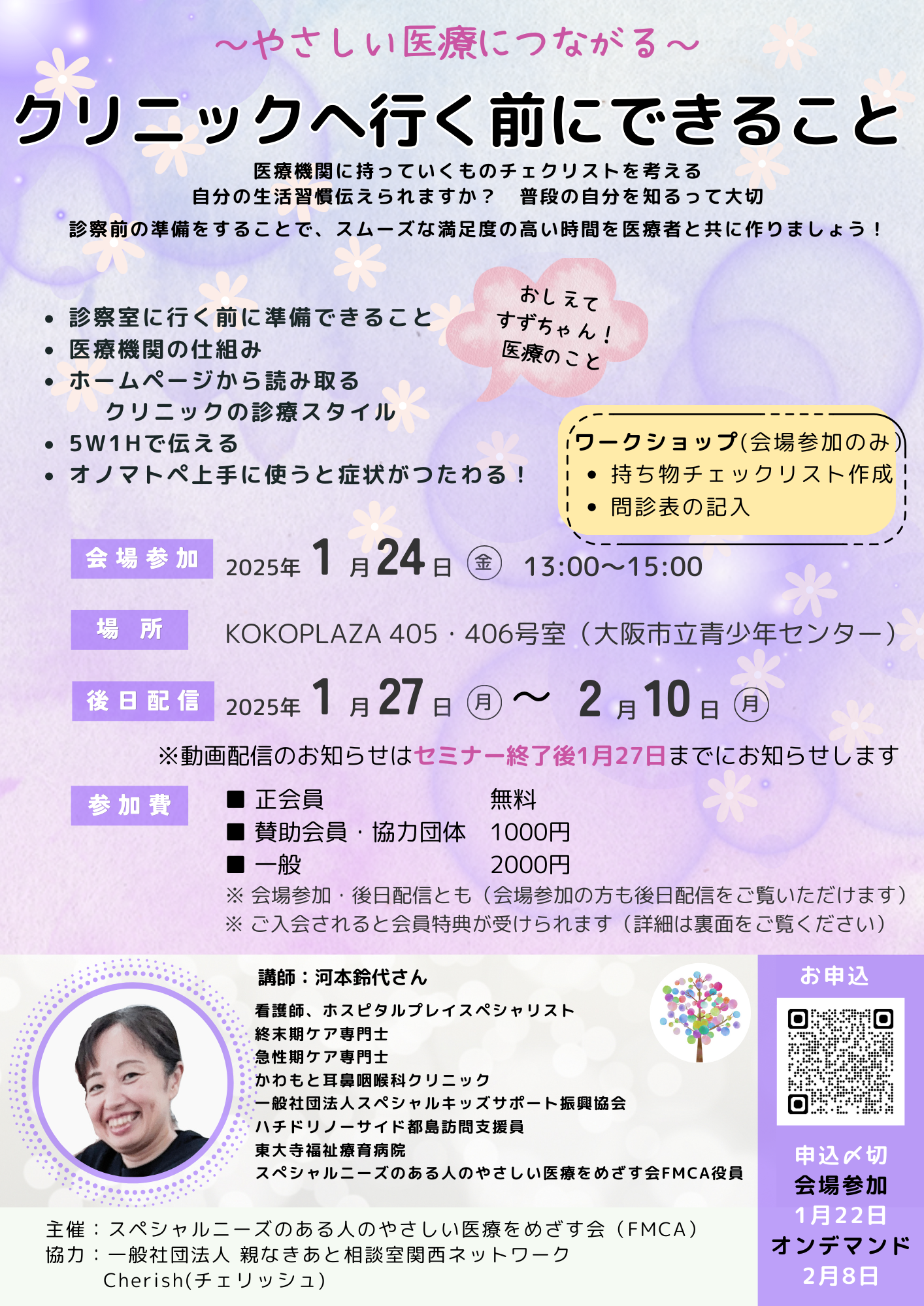 お申込みは ➡ ~やさしい医療につながる~『クリニックへ行く前にできること』